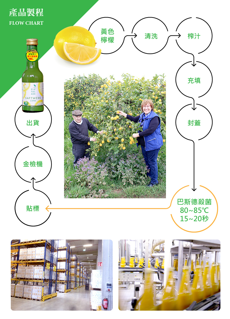 ˙ 從產地收成至榨汁、充填、包裝等加工流程,全程品質把關,經巴斯德殺菌,保留較多的營養元素。