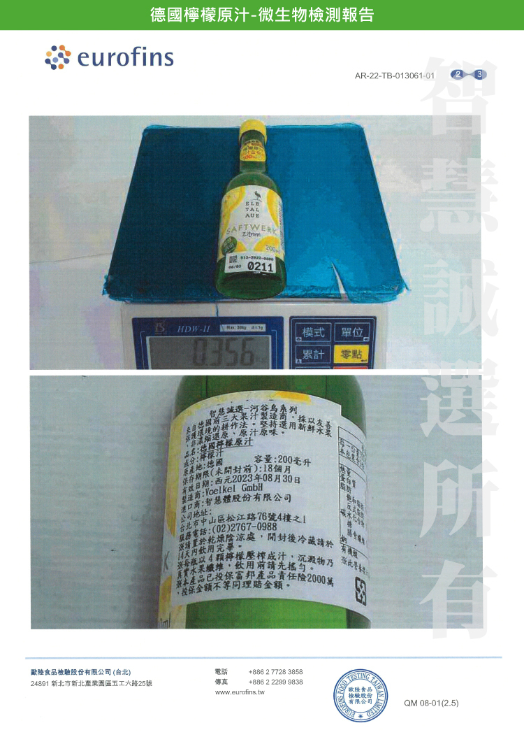 ˙ 來自德國前三大果汁製造商,工廠位於易北河谷(ELBTALAUE)近郊,屬於生態保護區,採以友善保護環境的耕作法。