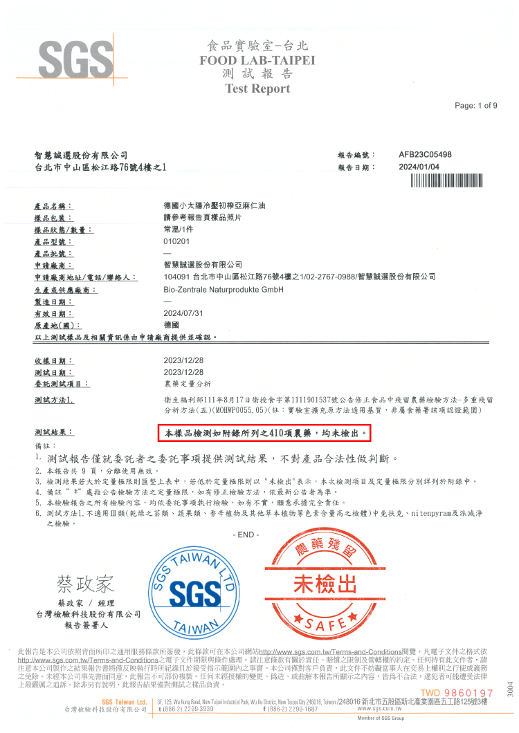 | 品名 | 德國小太陽冷壓初榨亞麻仁油 |